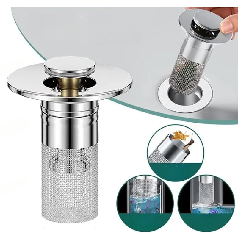 בניגוד לצינורות רגילים עם כפתור לחיצה, פקק הניקוז הזה מצויד בסל אנטי-חסימה פנימי שאוסף בעדינות את השיער ומונע מהצינור להיסתם. שום תכשיט, טבעת, לכלוך או חפץ אחר לא ייכנסו לצינור הניקוז.